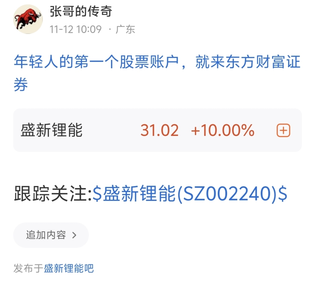 张哥昨天分享的$盛新锂能(SZ002240)$ 今日涨停