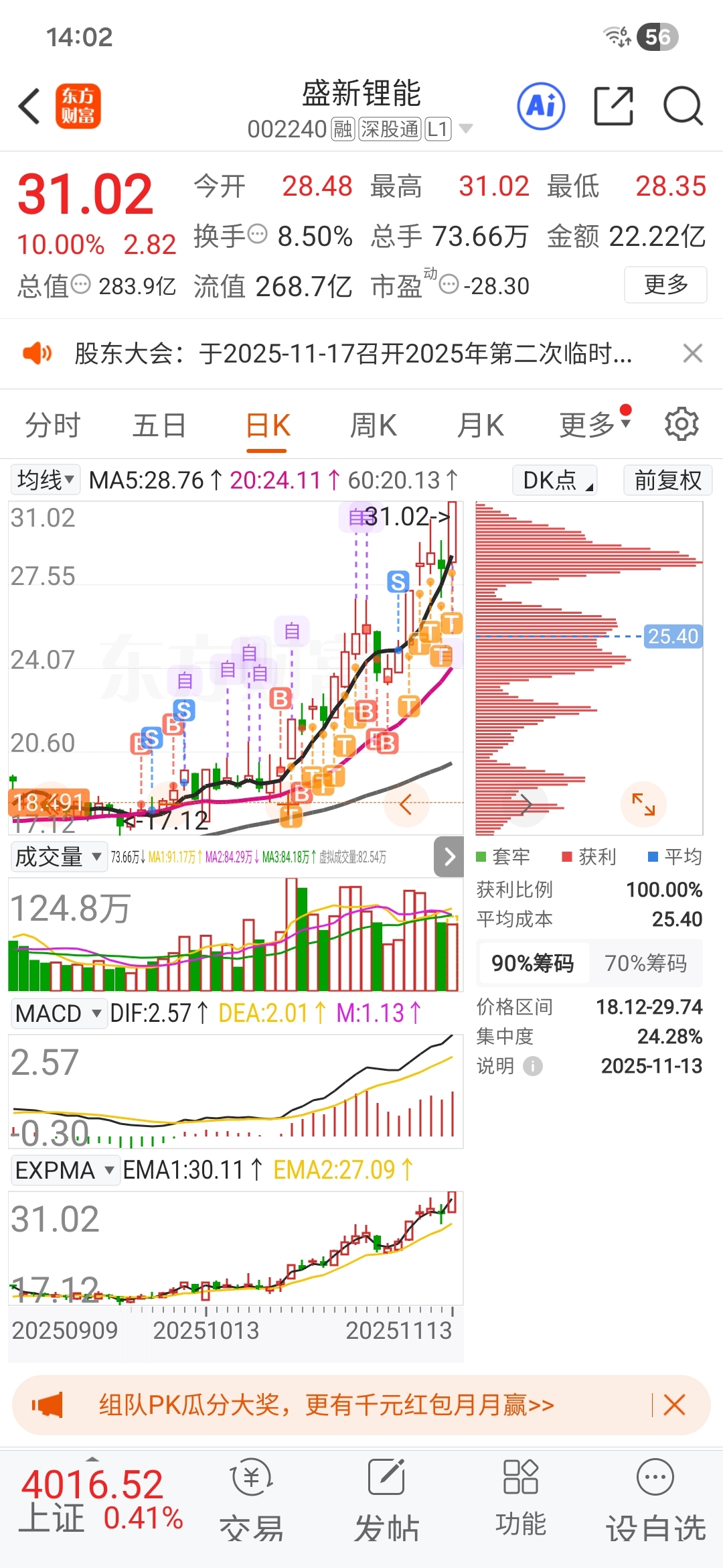 $盛新锂能(SZ002240)$ 涨我不动,跌就加仓,不动如山。