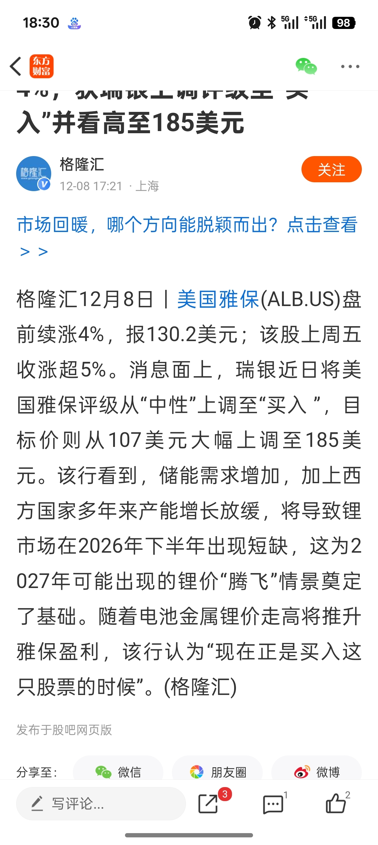 温馨提示: 1.根据《证券法》规定,禁止编造、传播虚假信息或者误导性信息,扰乱证券市场;2.用户在本社区发表的所有资料、言论等仅代表个人观点,与本网站立场无关,不对您构成任何投资建议。用户应基于自己的独立判断,自行决定证券投资并承担相应风险。《东方财富社区管理规定》