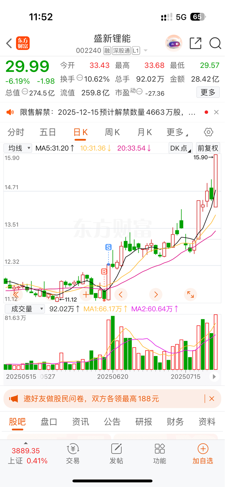 $盛新锂能(SZ002240)$ 10块钱吃了一个板就跑了