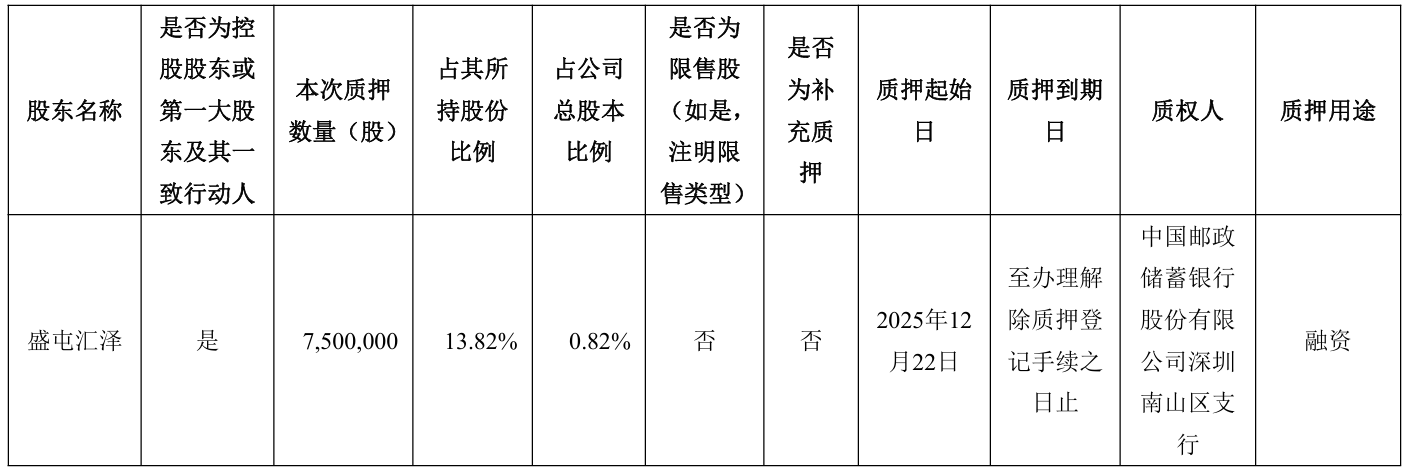 截至公告披露日,盛屯汇泽累计质押股份为4948万股,占其持股总数的91.15%。
