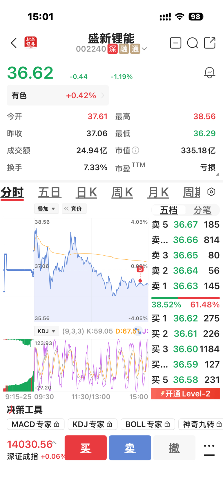 $盛新锂能(SZ002240)$ 今天最低点又没抓住 无奈之下在36.7 加了两手