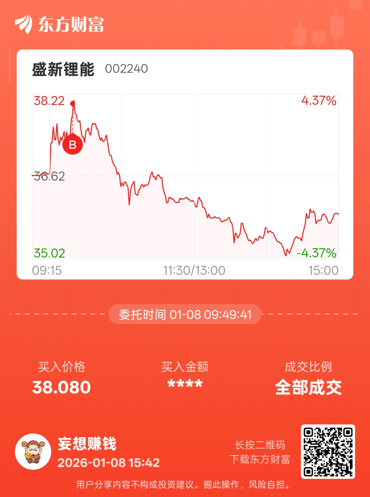温馨提示: 1.根据《证券法》规定,禁止编造、传播虚假信息或者误导性信息,扰乱证券市场;2.用户在本社区发表的所有资料、言论等仅代表个人观点,与本网站立场无关,不对您构成任何投资建议。用户应基于自己的独立判断,自行决定证券投资并承担相应风险。《东方财富社区管理规定》