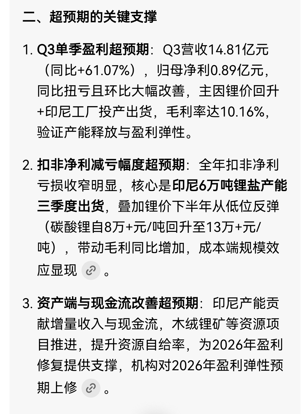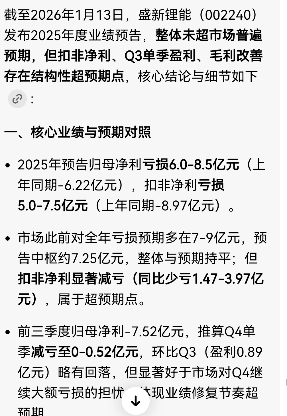 业绩披露的比预想的稍微好一点,锂价回升对业绩有所改善。比上个季度亏得少一些了。