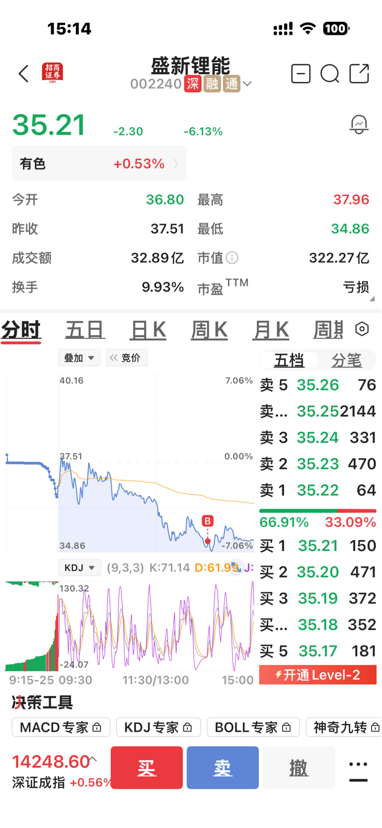 $盛新锂能(SZ002240)$ 低开然后做拉升状持续几十分钟左右直线下跌 然后就没有然后了。 在37.09加仓了400股,早盘红盘的时候又心存侥幸没有粗掉昨天加仓的400股浮盈剩下不多了,红一天绿两天 红的点位少的令人落泪 绿的点位那是无底深渊的赶脚啊!