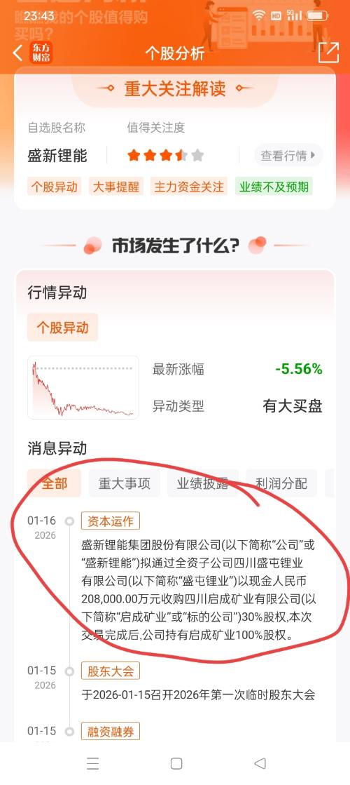 $盛新锂能(盛新锂能集团股份有限公司(以下简称“公司”或“盛新锂能”)拟通过全资子公司四川盛屯锂业有限公司(以下简称“盛屯锂业”)以现金人民币208,000.00万元收购四川启成矿业有限公司(以下简称“启成矿业”或“标的公司”)30%股权,本次交易完成后,公司持有启成矿业100%股权。)$
