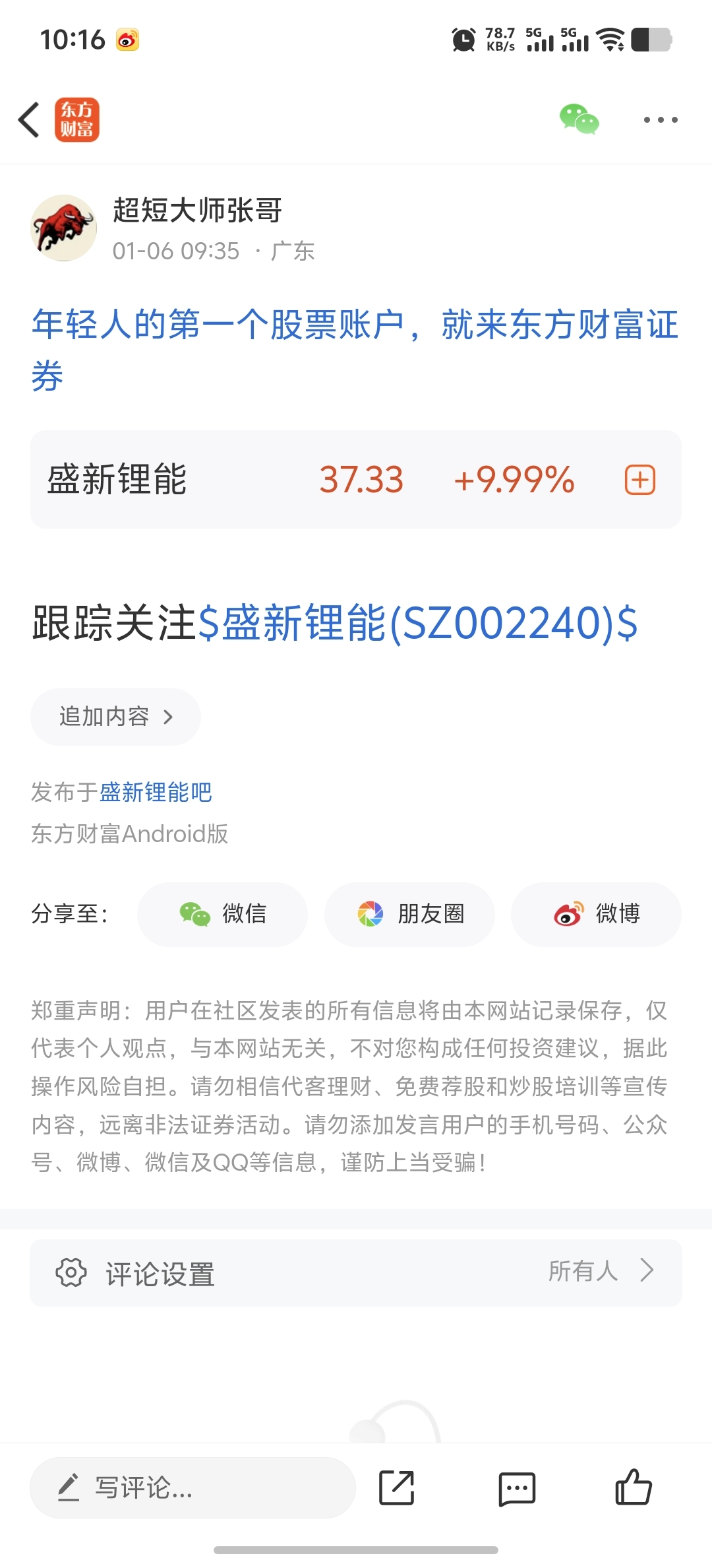 温馨提示: 1.根据《证券法》规定,禁止编造、传播虚假信息或者误导性信息,扰乱证券市场;2.用户在本社区发表的所有资料、言论等仅代表个人观点,与本网站立场无关,不对您构成任何投资建议。用户应基于自己的独立判断,自行决定证券投资并承担相应风险。《东方财富社区管理规定》