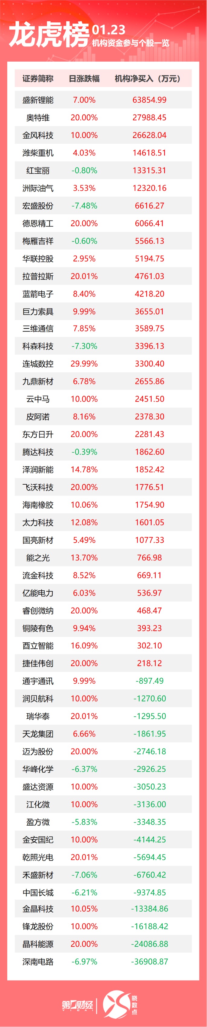 龙虎榜丨机构今日抛售这17股,买入盛新锂能6.39亿元