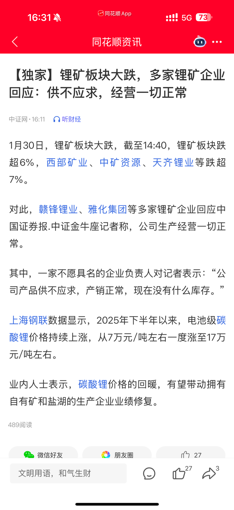$盛新锂能(SZ002240)$ 既然枸杞所和0德认为锂挖不完,那么上游可以启动减产保利润了