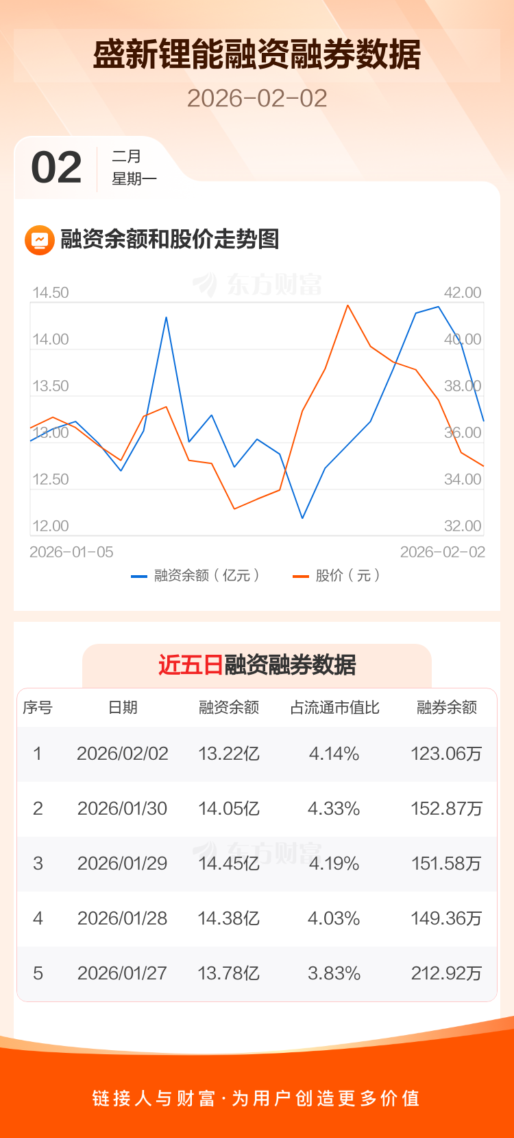 交易所最新数据显示,盛新锂能于2026年2月2日获融资买入1.23亿元,融资偿还2.05亿元,当日融资净偿还8219.05万元。目前,该股融资余额13.22亿,占流通市值比例为4.14%。