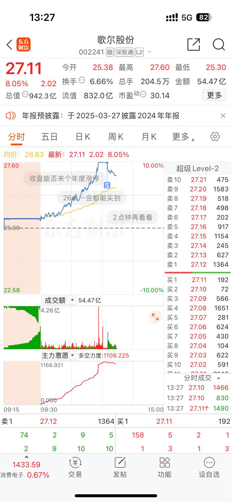 $歌尔股份(SZ002241)$ 一猜就是这样,刚设置好条件单,不到五分钟就成交了