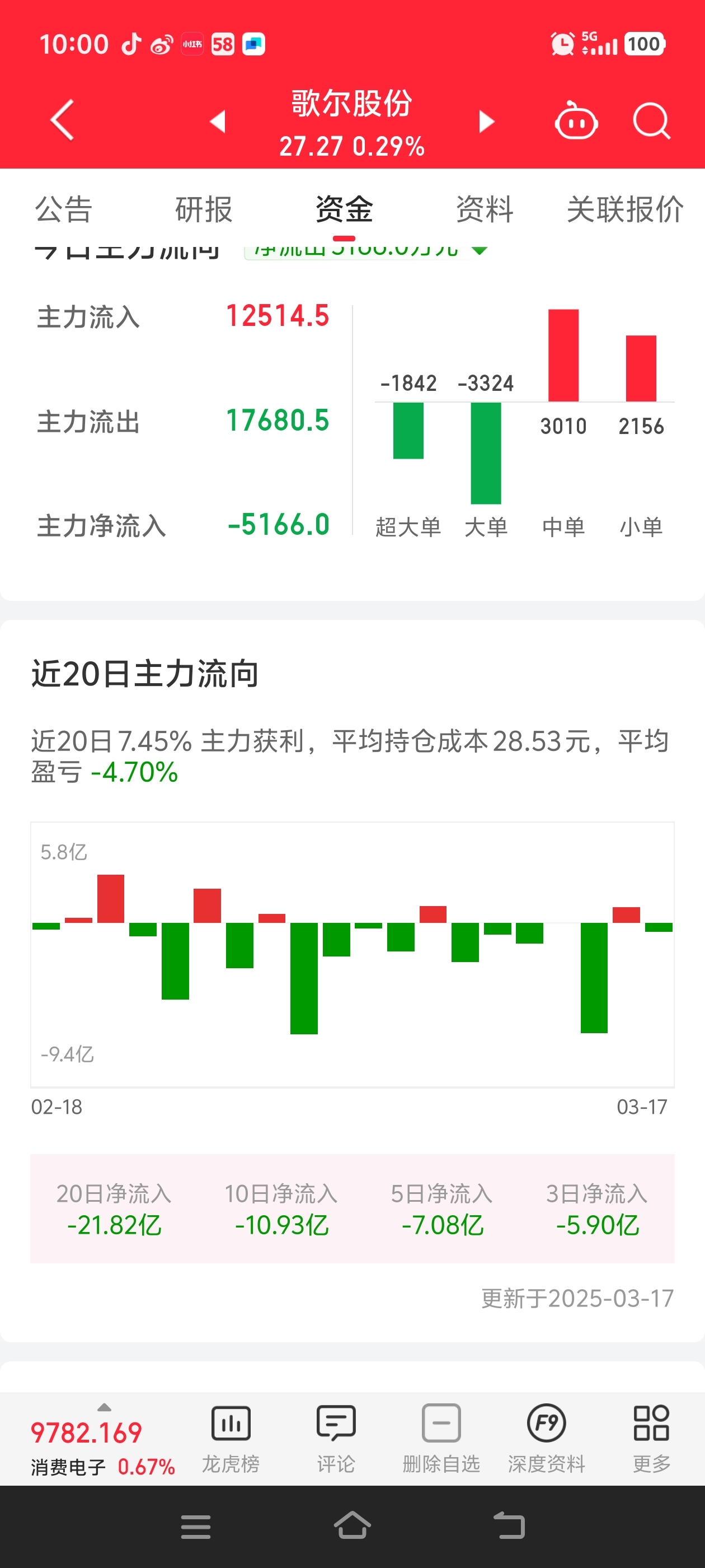 $歌尔股份(SZ002241)$ 主力天天跑,没有一天是大额进来的,还在出货阶段