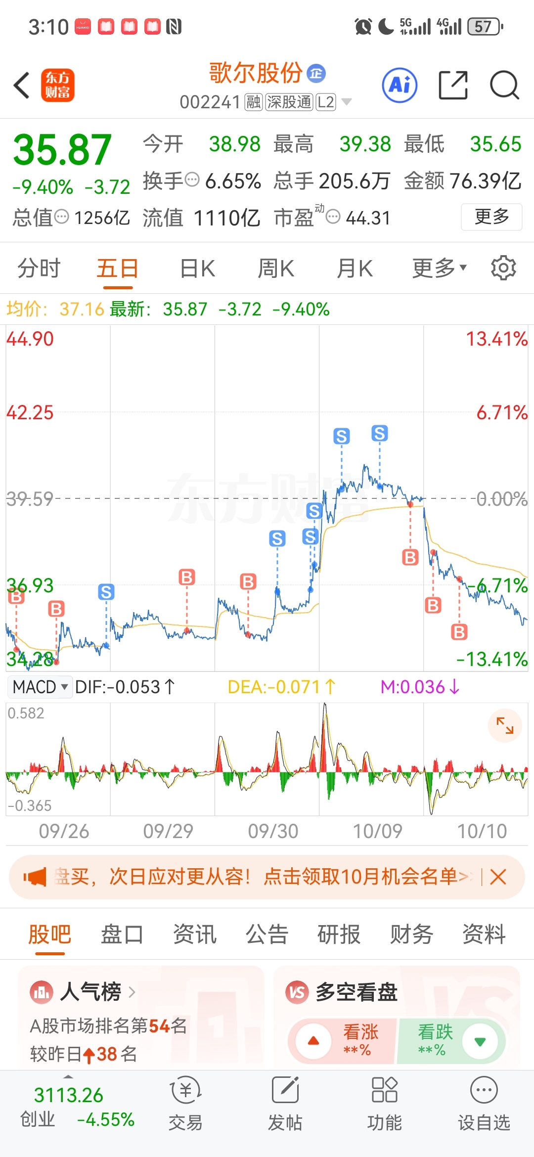 $歌尔股份(SZ002241)$ 砸的好啊,昨天还在担心没啥筹码了,今天正好补点货进来,日子还长,涨跌我都喜欢,哈哈。