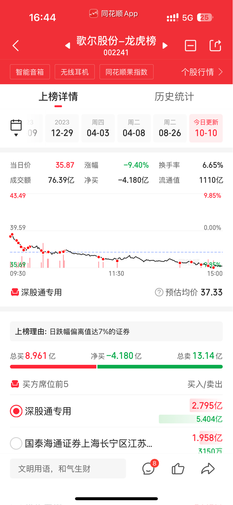 这真是出息了呀家人们,居然跌到龙虎榜上