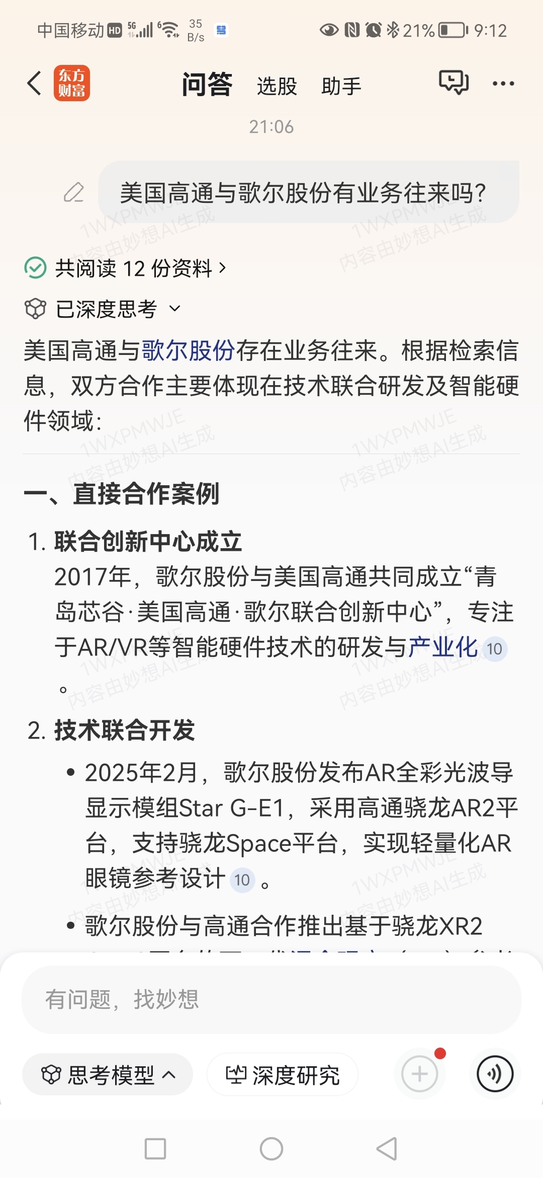 $歌尔股份(SZ002241)$ 真的是与高通有关联