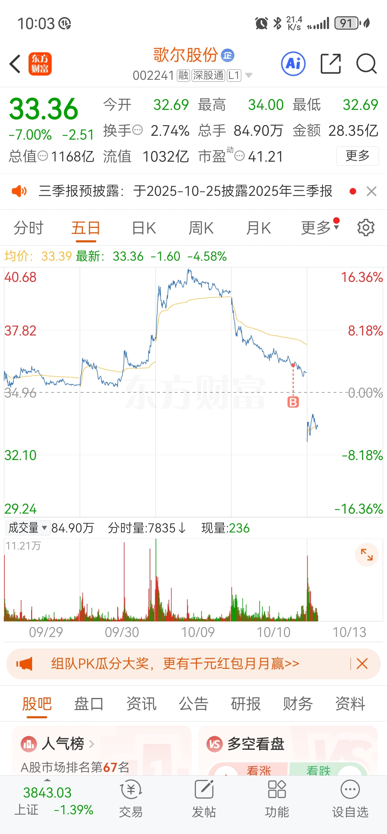 $歌尔股份(SZ002241)$ 奥力给,加油