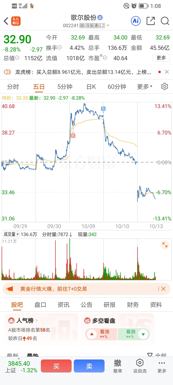 $歌尔股份(SZ002241)$ 跑慢了,就是长期股东了,原则很重要,两天十五六个点