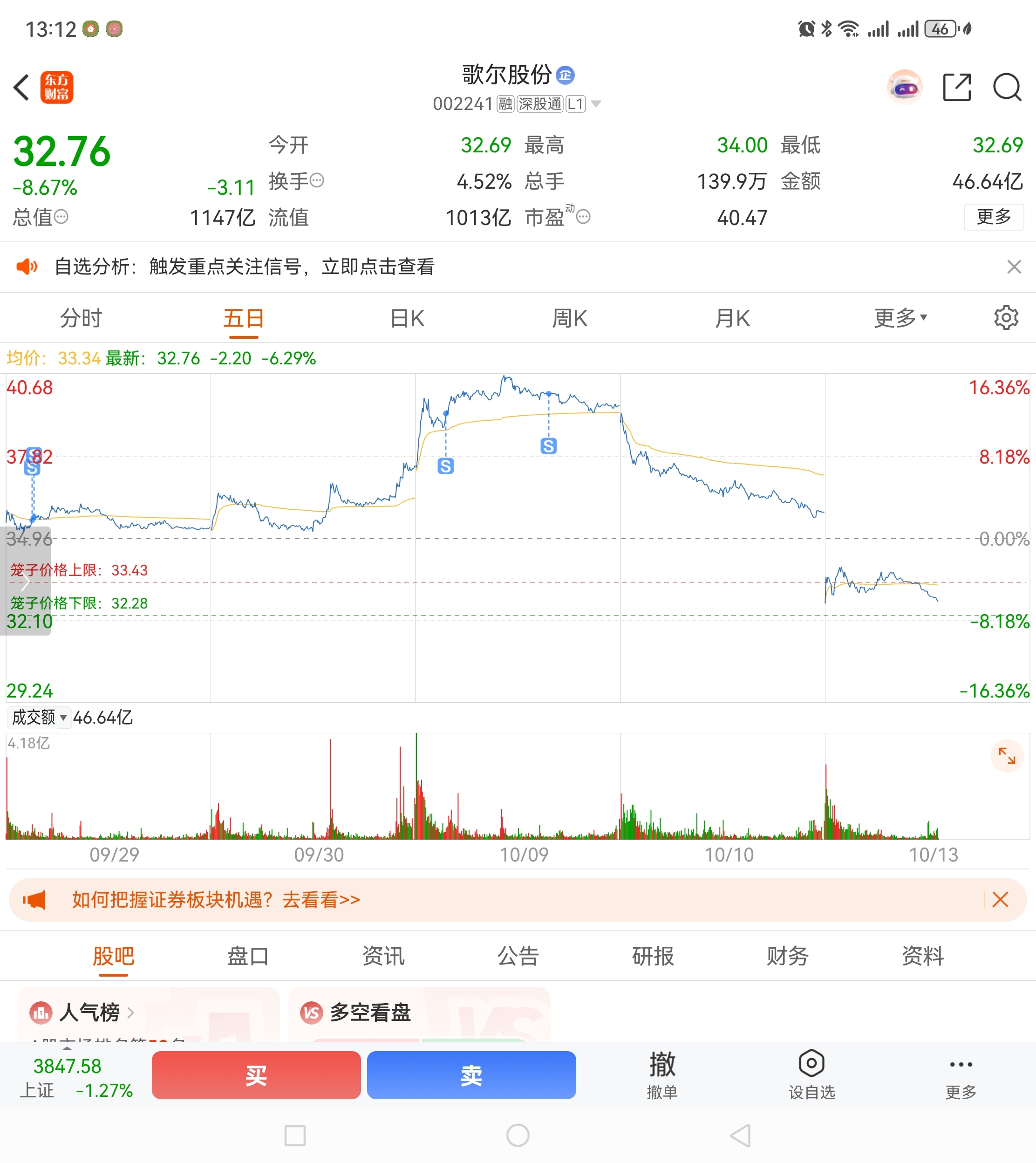 $歌尔股份(SZ002241)$ 还好40清仓了,这得砸的多狠呀,