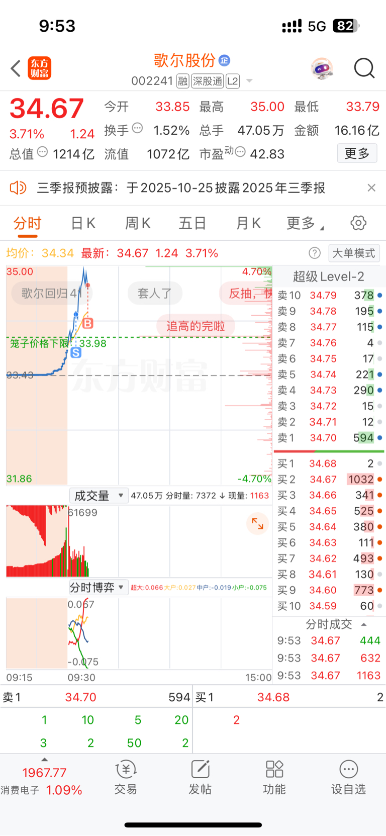 $歌尔股份(SZ002241)$ 卖点成买了半仓