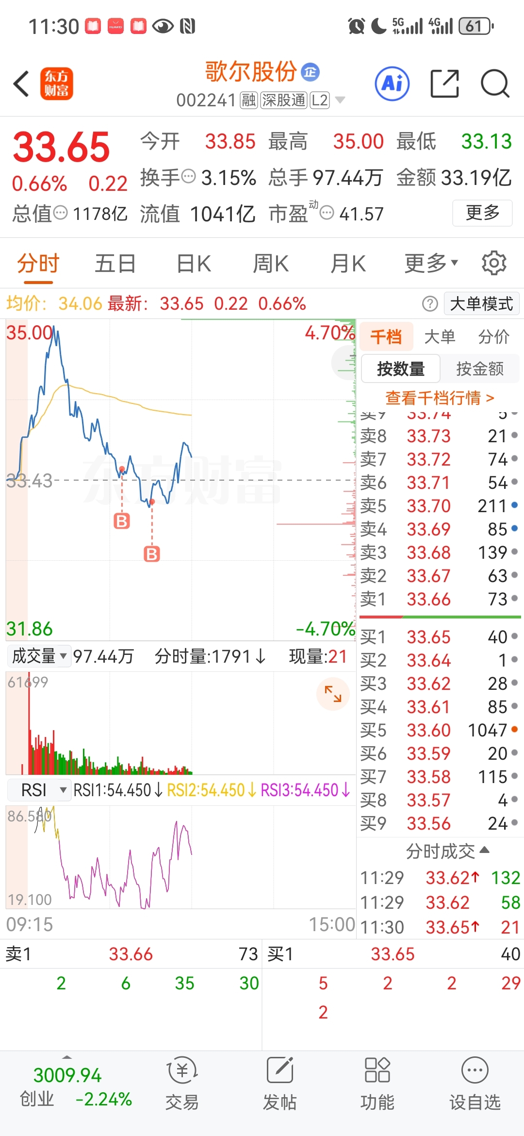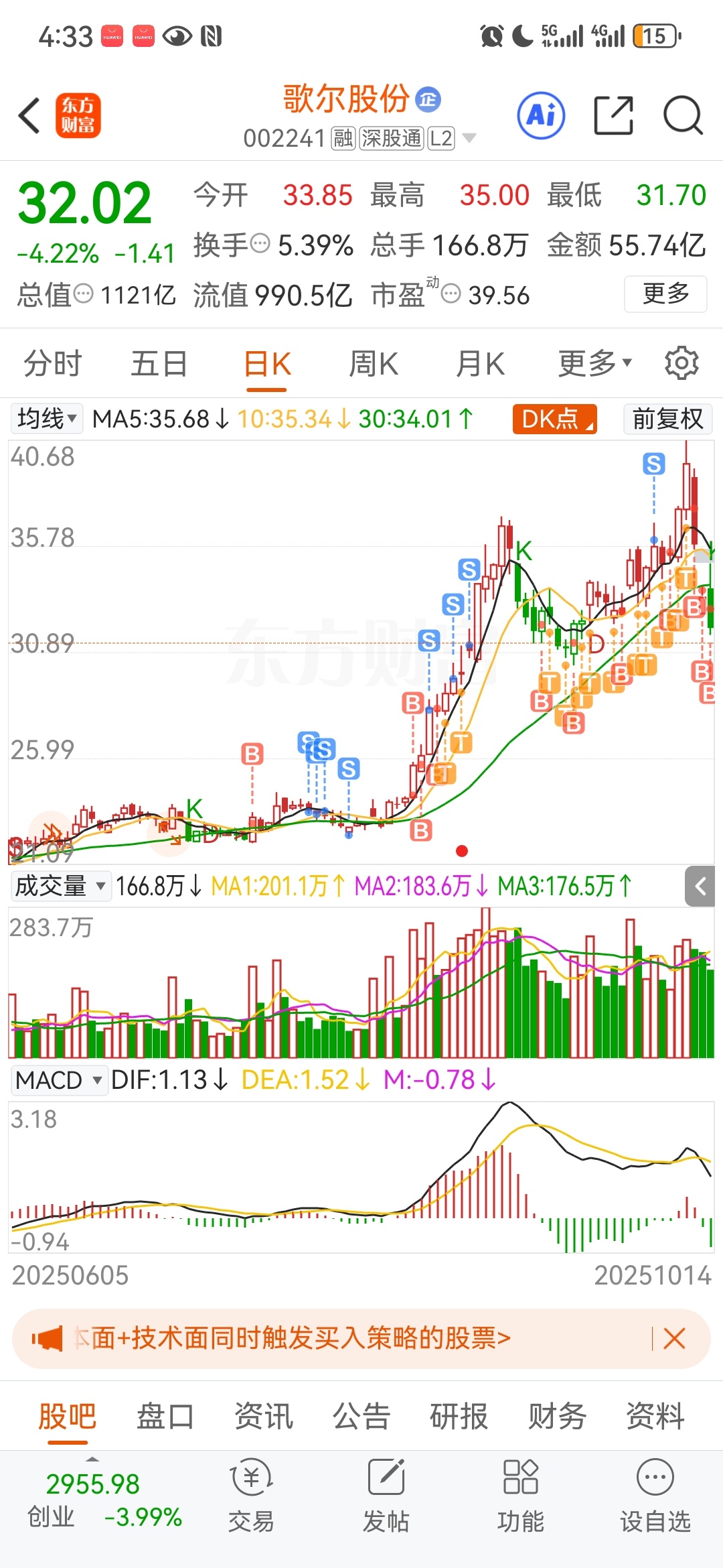 $歌尔股份(SZ002241)$ 散户朋友记住了,这两天低位拿的筹码别轻易丢了。有信心的可以看情况做T,没信心的最少拿到破上方缺口再看情况。今天继续进点货。