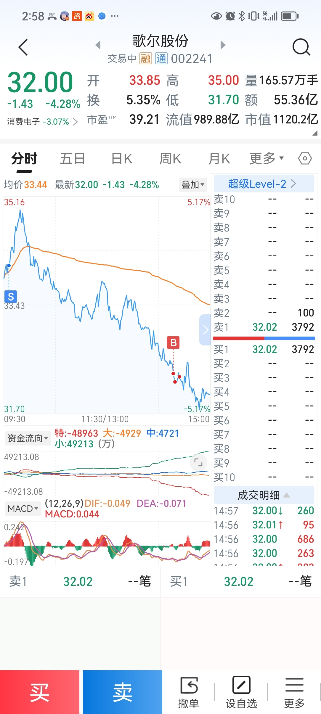 $歌尔股份(SZ002241)$ 今日份你们做T了吗?你们怕吗?我不怕。