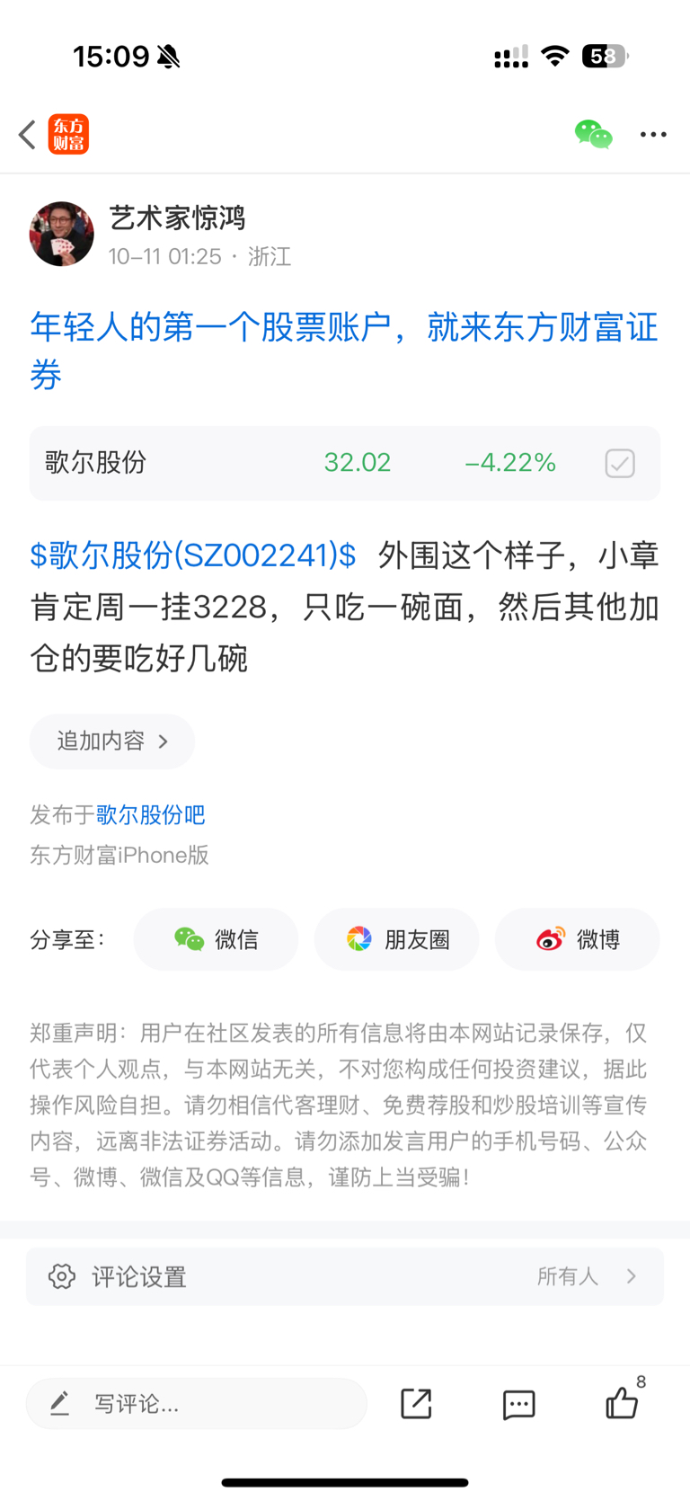 温馨提示: 1.根据《证券法》规定,禁止编造、传播虚假信息或者误导性信息,扰乱证券市场;2.用户在本社区发表的所有资料、言论等仅代表个人观点,与本网站立场无关,不对您构成任何投资建议。用户应基于自己的独立判断,自行决定证券投资并承担相应风险。《东方财富社区管理规定》
