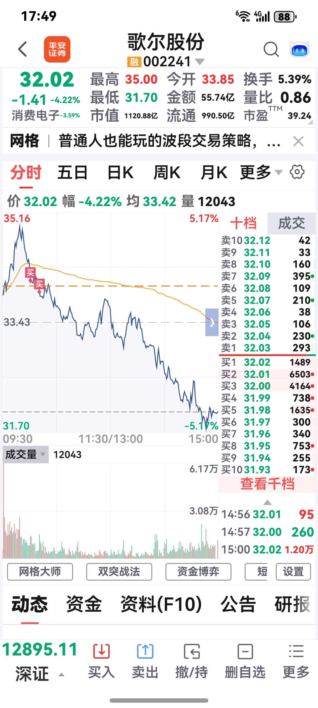 $歌尔股份(SZ002241)$ 真倒霉心慌慌