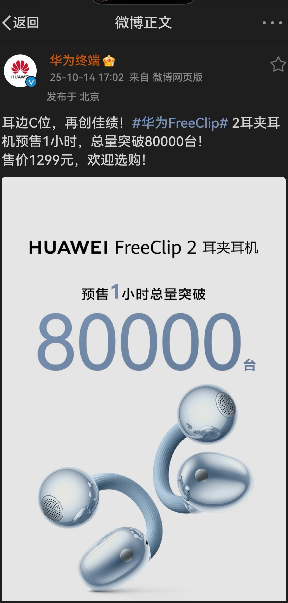 歌尔代工的哦,独一档的耳夹式耳机,1小时就卖出了8万台!顺便也贡献一台。