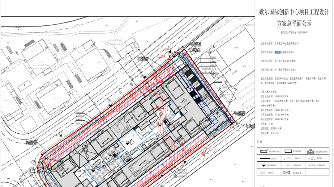 规模方面,项目建设用地面积16888.02平方米,总建筑面积达11.88万平方米,其中地上7.89万平方米、地下4万平方米,容积率4.9,最高建筑高度93.81米(17层),规划涵盖研发大楼,未来有望成为歌尔在长三角的“技术枢纽”。