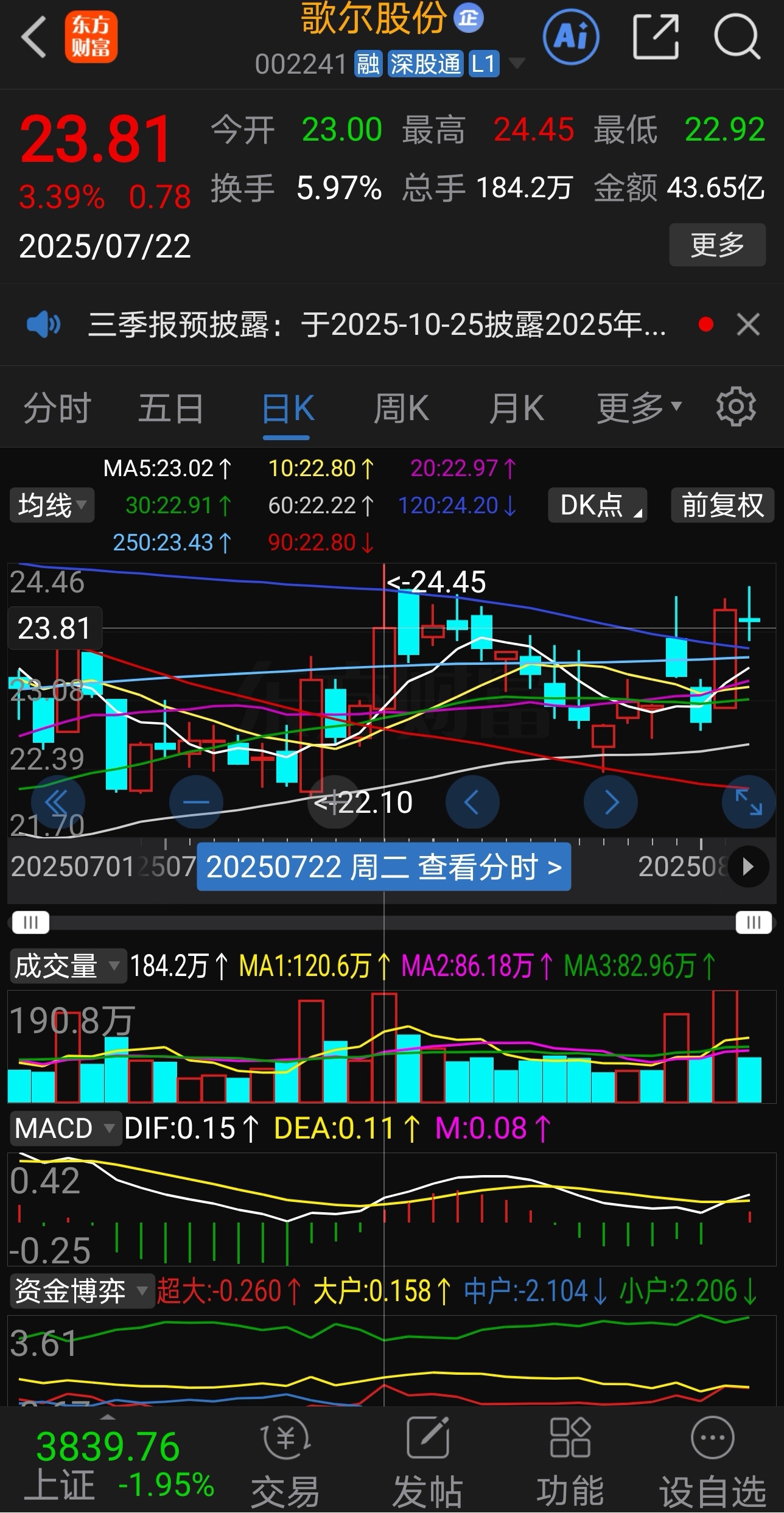$歌尔股份(SZ002241)$ 7月22号股价大涨3.38%,晚上发布拟收购公告,第二天23号股价跌1.13%。可见当时并没有视收购为利好,而今停止收购,对股价应该也没有啥影响,甚至构成利好,毕竟100多亿啊。