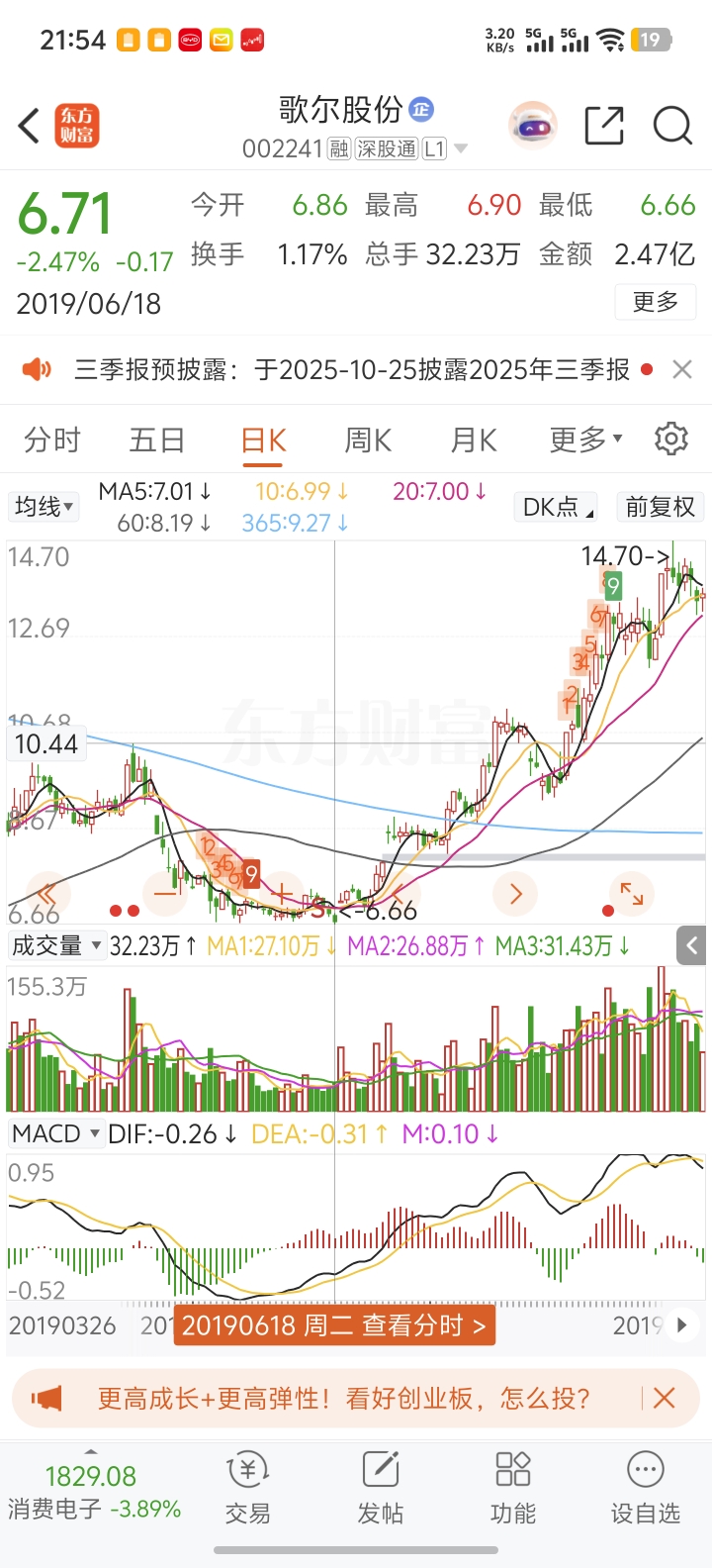$歌尔股份(SZ002241)$ 刚刚查资料追溯前面 歌尔在2019.6.17晚间也同样有一份股权收购终止协议 在6.18当天创下短期内低点 随后一路上涨 所以具体情况具体分析 还得看此次终止收购的具体原因