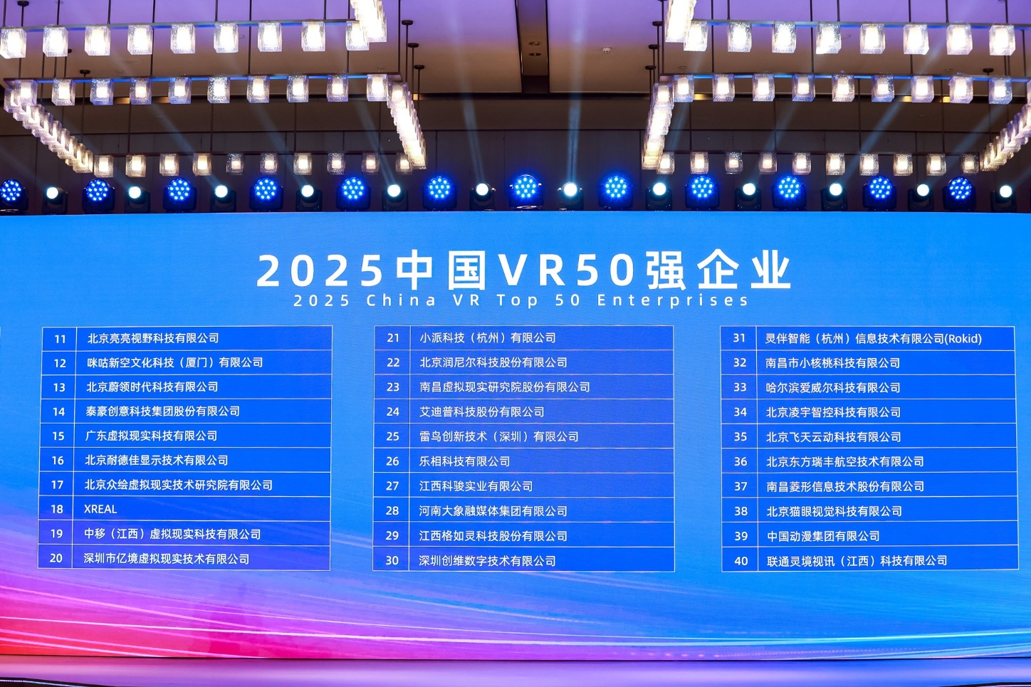 2025中国VR50强企业发布 歌尔股份、京东方、宏达通讯排名前三