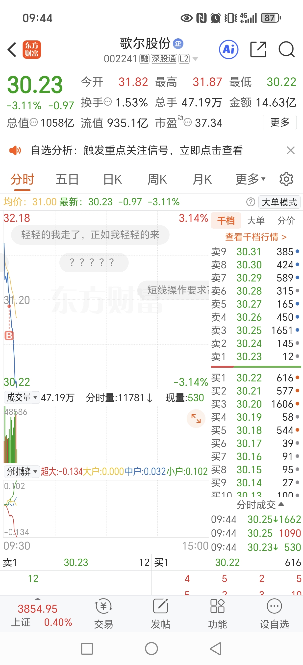 太痛苦了,中美经贸会谈,那么大的利好,我早上满仓买进了歌尔股份,没想到跌那么多,
