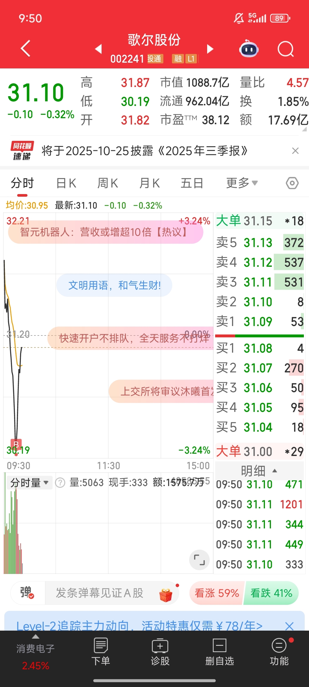 $歌尔股份(SZ002241)$ 给你机会了,你能把握住吗?哈哈哈 运气好啊