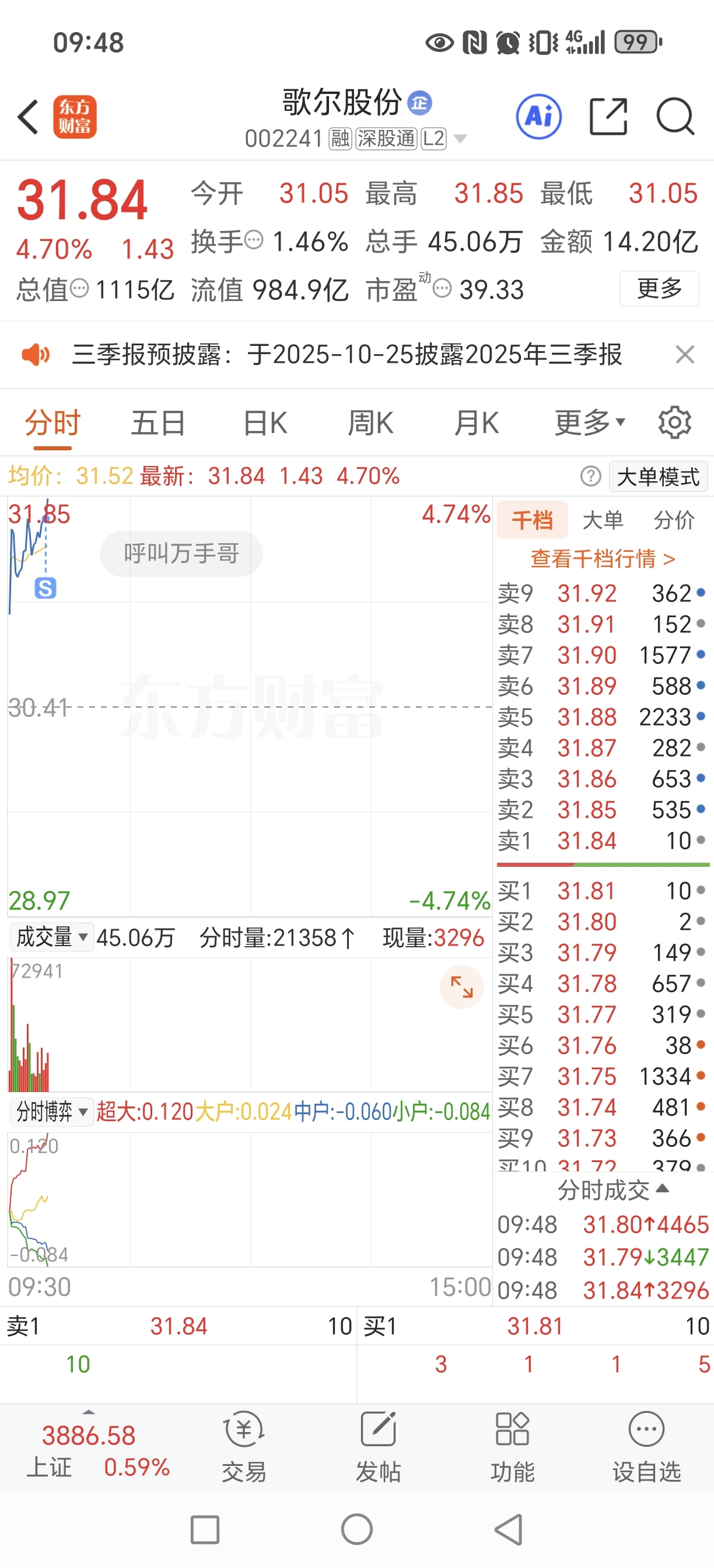 $歌尔股份(SZ002241)$ 卖飞了,太难受了,一卖马上就往上拉升