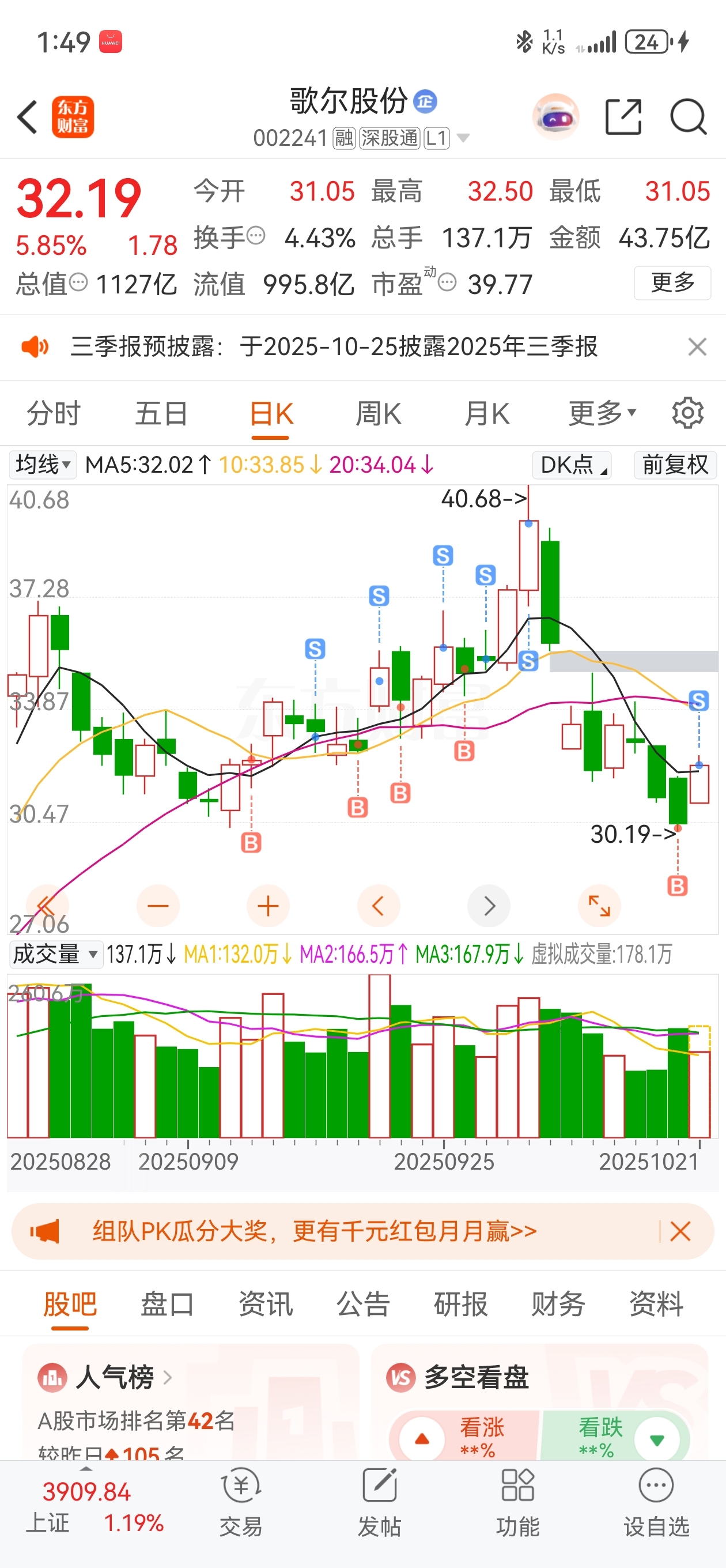 $歌尔股份(SZ002241)$ 该跑就跑,不能贪