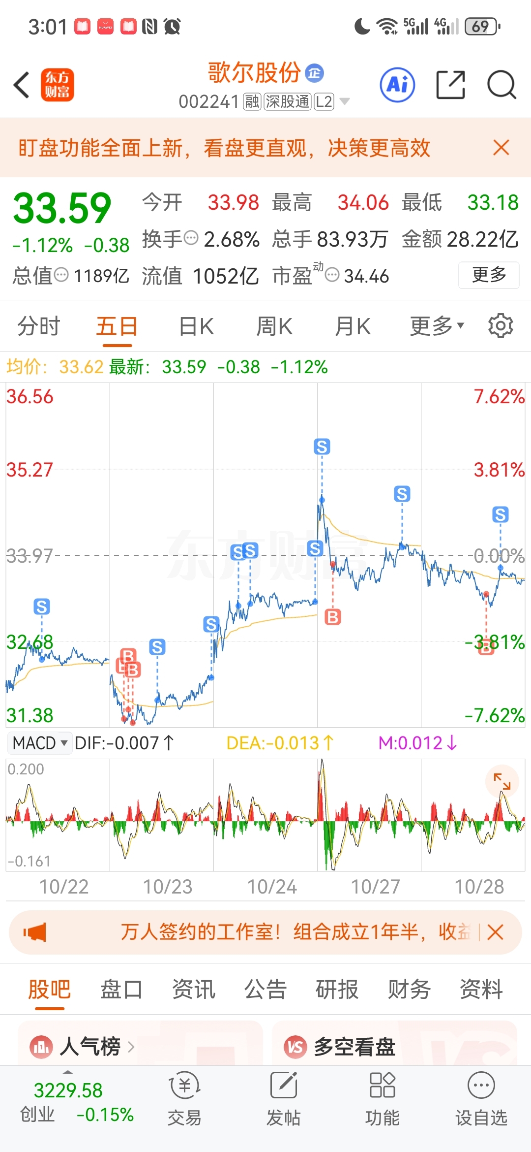 $歌尔股份(SZ002241)$ 一如既往的淡定,涨跌都是赚钱的机会,希望散户朋友能在我的操作中找到适合自己的交易模式。应该很少有人像我这么细致的截图,把自己当天操作发出来的了吧,至少我还没见到过。大家加油!
