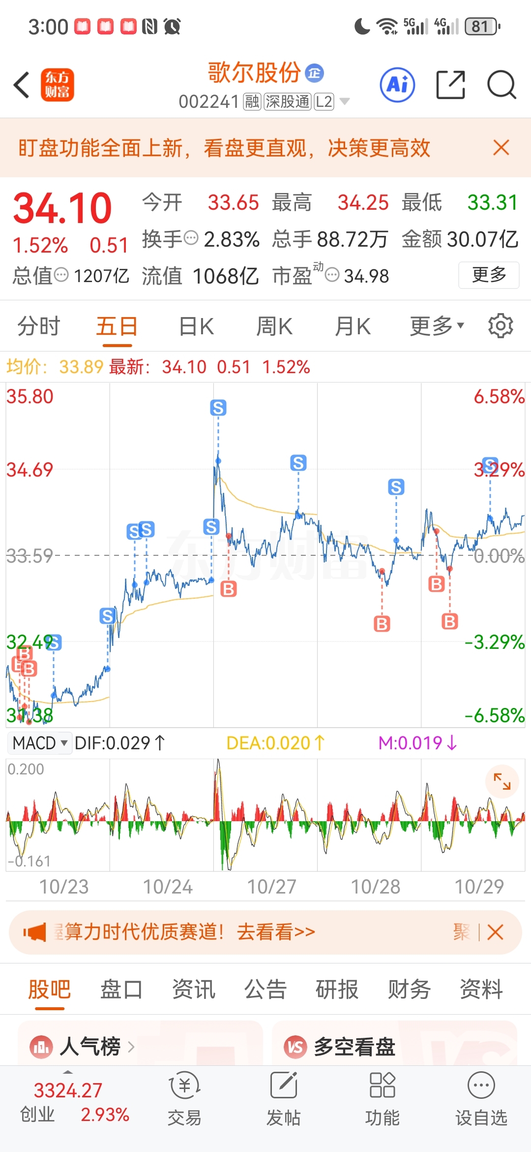 $歌尔股份(SZ002241)$ 做了个T顺便加了一点仓位,目前仓位不到两成。最近一直加仓的光伏终于迎来爆发了,一样的减仓保留住利润。长期看好的标的长期操作,不断降低成本,目前歌尔成本不到23,大家一起加油!