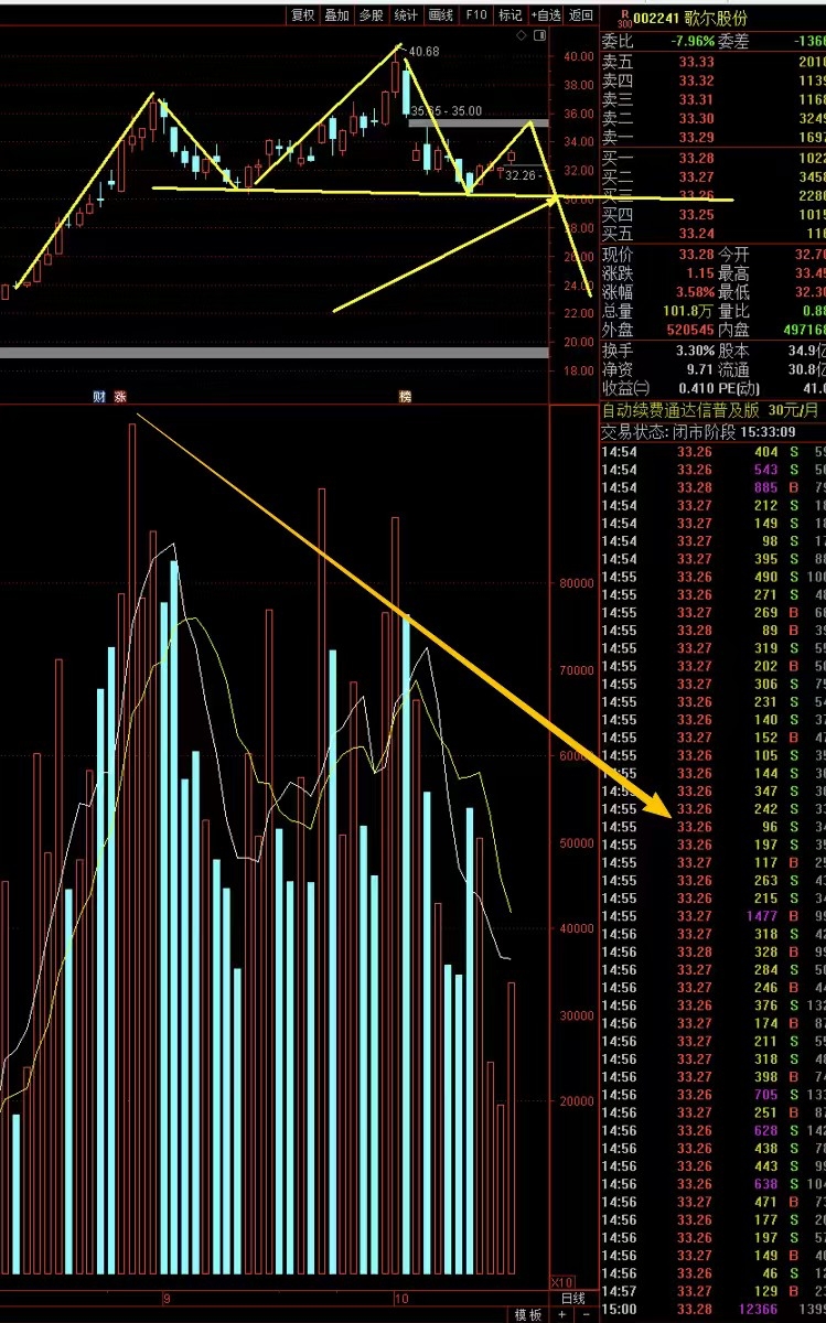$歌尔股份(SZ002241)$ 25日已提醒多技术指标背离,趋势量价背离,有做头肩顶趋势,现在只要跌破右肩交叉位即确定头肩顶形成