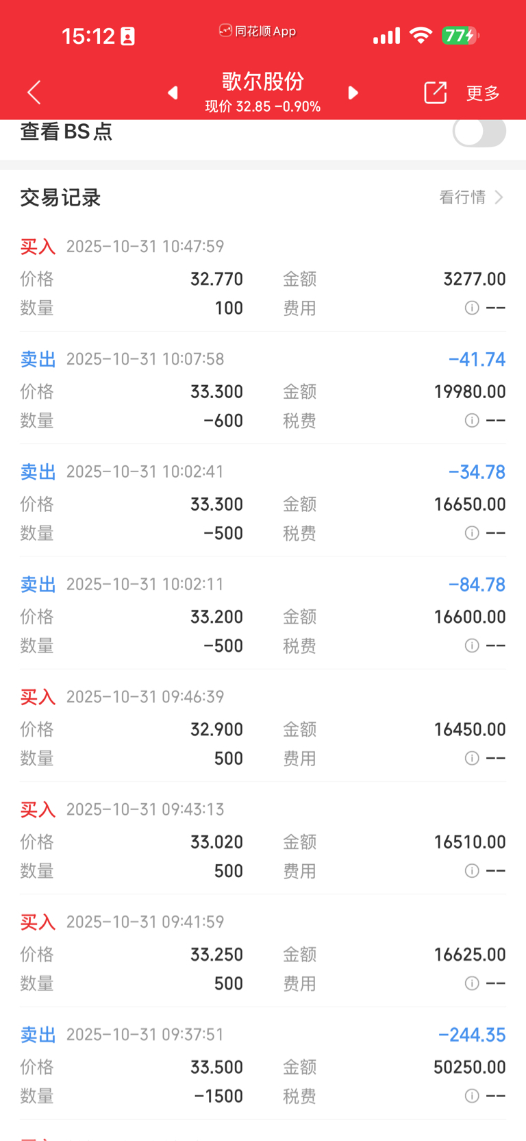 $歌尔股份(SZ002241)$  每天坚持做 T,重仓歌尔,一共 2900 股,对于我这个小韭菜,也不少了