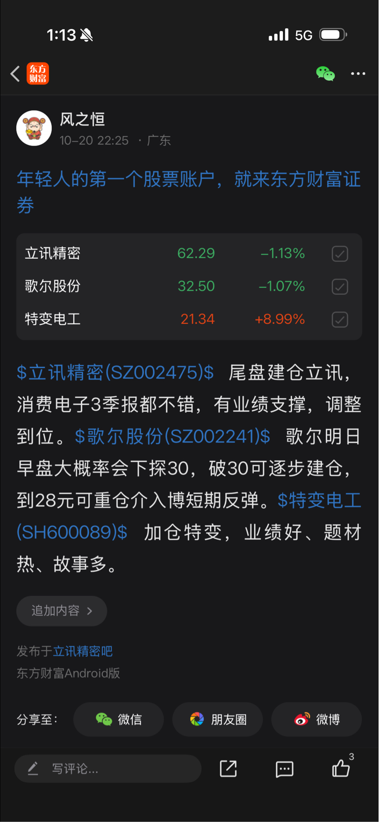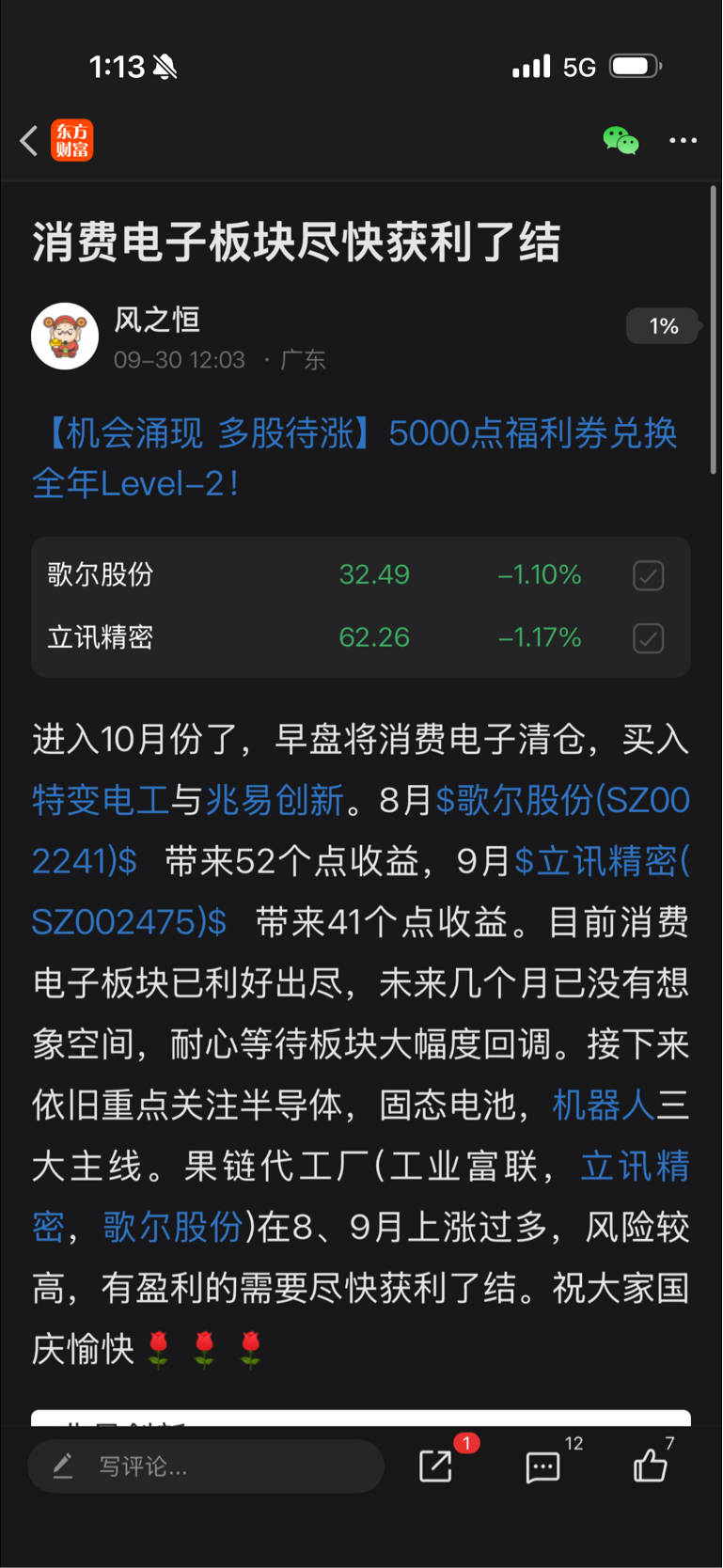 $歌尔股份(SZ002241)$ $立讯精密(SZ002475)$ 粉丝朋友们,恒哥强不强!