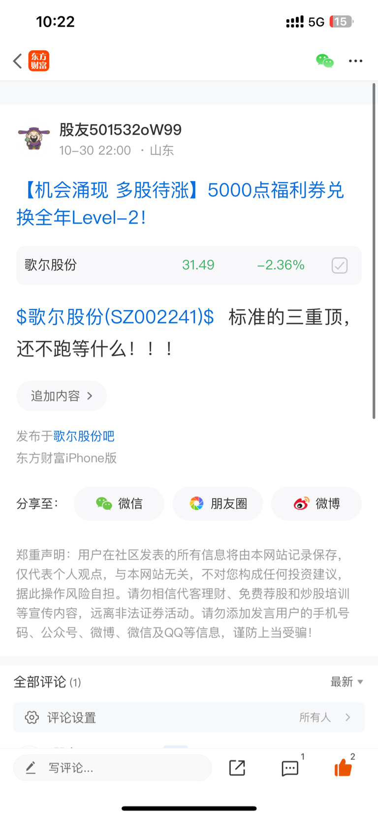 $歌尔股份(SZ002241)$ 30号就喊你们跑了,下周暴跌 山顶站岗吧!!!