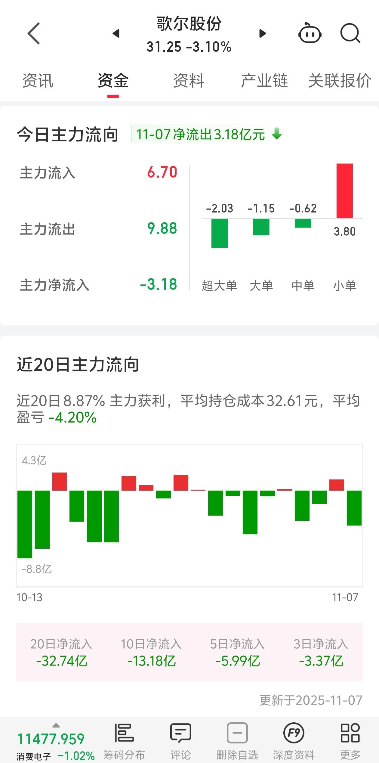 $歌尔股份(SZ002241)$ 说散户在卖啊,洗盘啊,都是在忽悠新入歌尔接盘的,套牢的不愿意割肉的就装丝,准备抄底的新入场慎入,千亿市值,主力流入股价自然涨,主力净流入是股价上涨的原因,散户卖出永远不是股价下跌原因!