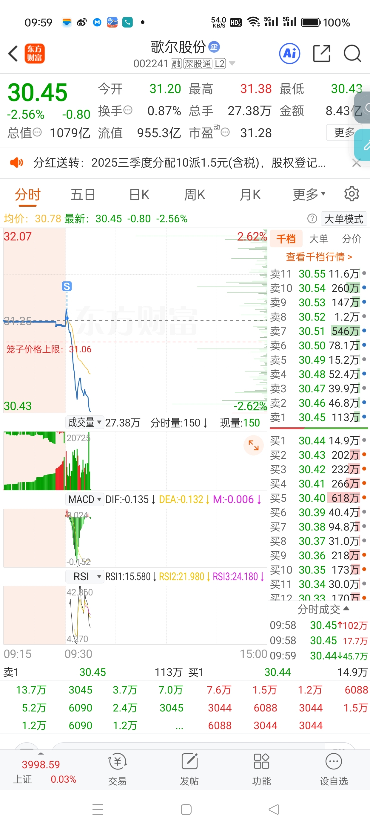 $歌尔股份(SZ002241)$ 真的是买一次亏一次