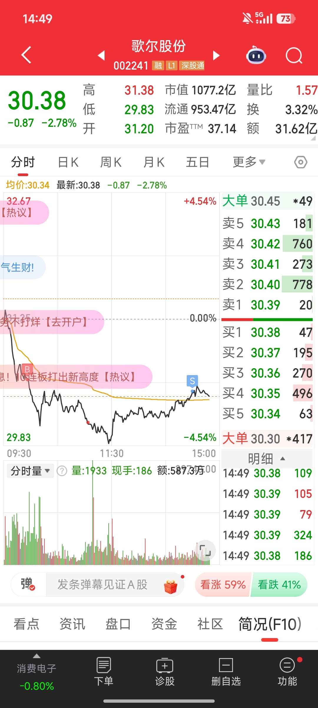 $歌尔股份(SZ002241)$ 买了两千股,T出一千股,这也太坑人了吧。底仓太重了,压力太大