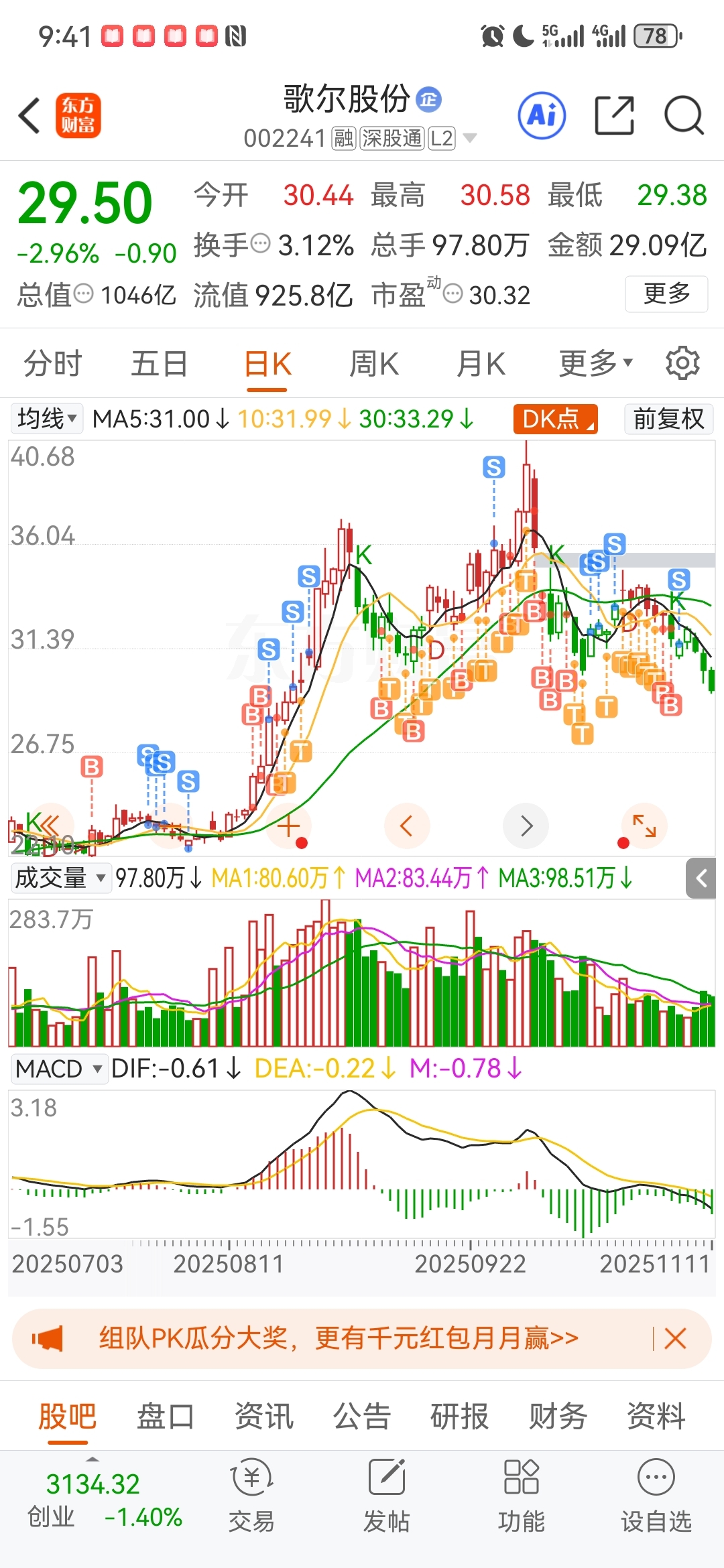 $歌尔股份(SZ002241)$ 兄弟们等我,刚看了一下今年四次清仓歌尔,四次全胜。我马上回来跟大家并肩作战,随时跌一波我满意就进来了,需要说明的是没有止跌我一下也不会进太多的,目前还是重仓光伏,之前听我的朋友应该都吃了一波肉了,大家继续加油!