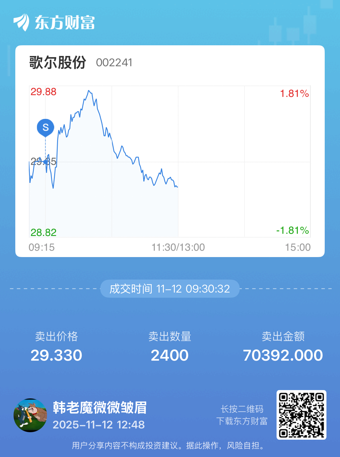 $歌尔股份(SZ002241)$ 亏了一桶油,割了,现在吃得好睡得香