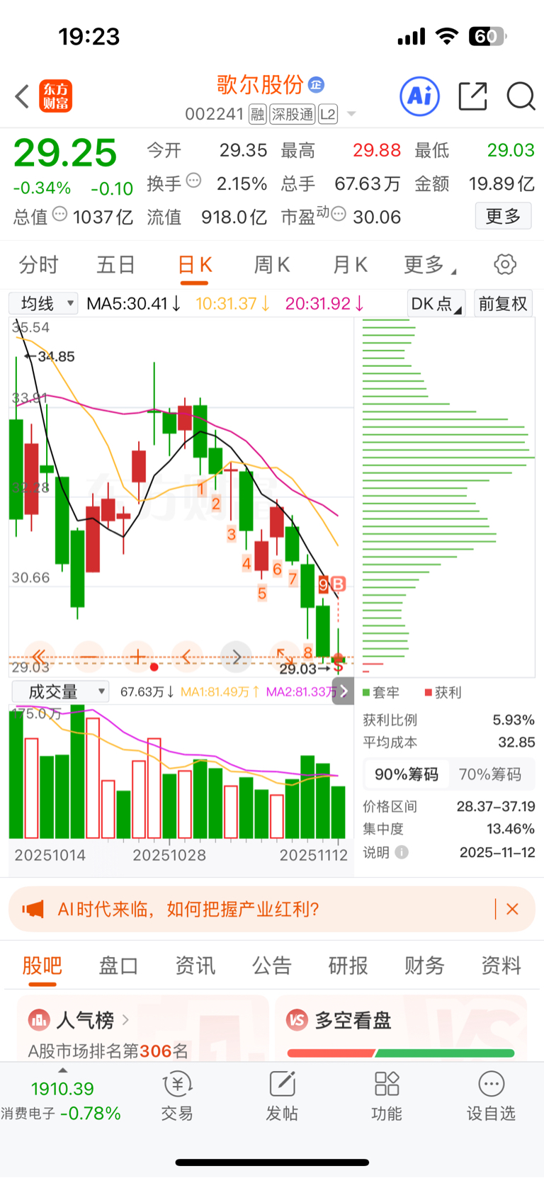 $歌尔股份(SZ002241)$ 怕锤子 我来了 大不了明天跑