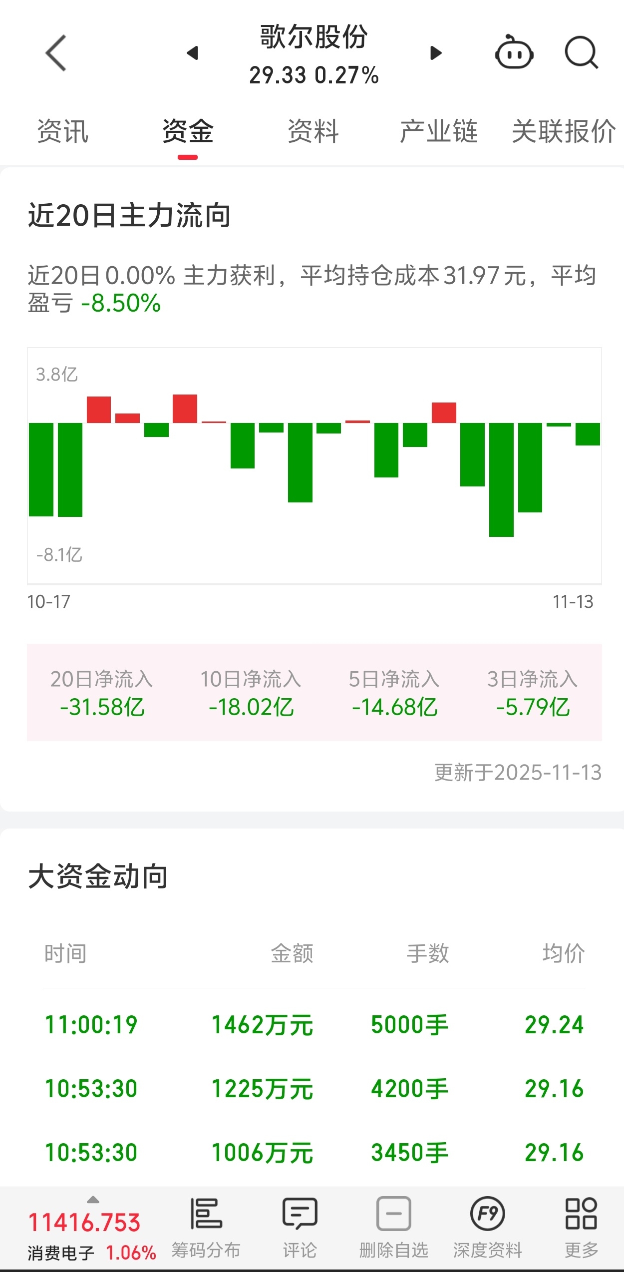 $歌尔股份(SZ002241)$ 遇到鬼了一样,主力不计成本跑