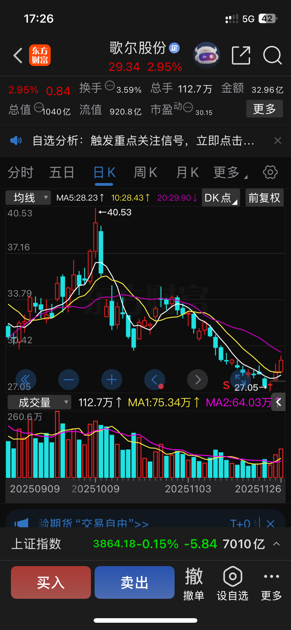 $歌尔股份(SZ002241)$ 逼近月线,可以清仓了